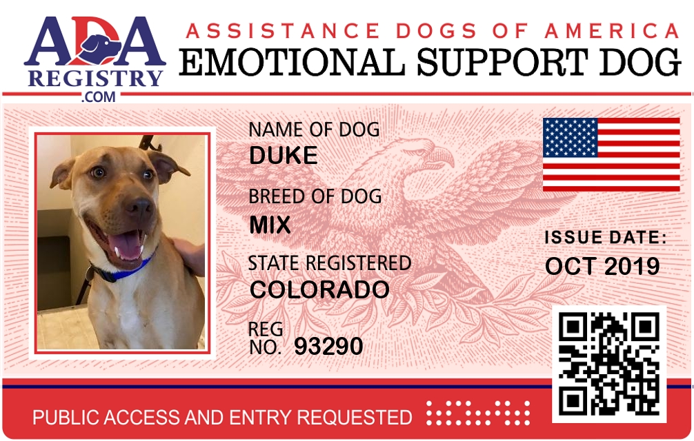 Emotional Support Dog Registration for Duke
