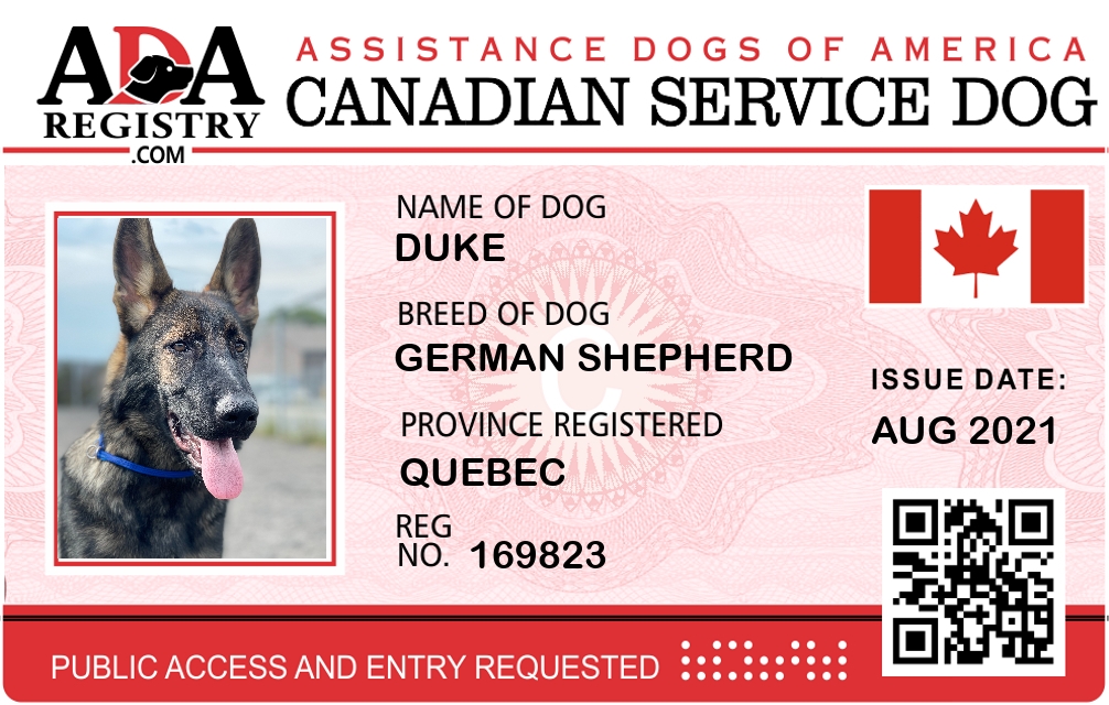 Service Dog Registration for Duke