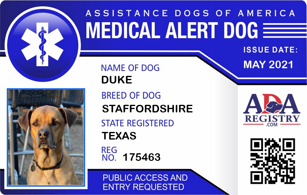 Medical Alert Dog Registration for Duke