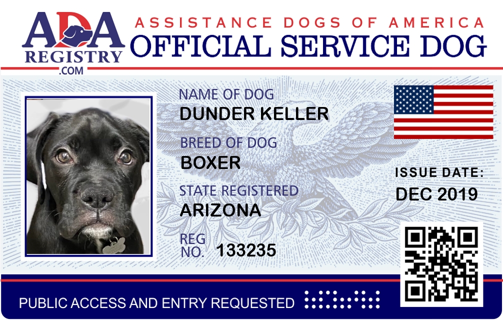 Service Dog Registration for Dunder Keller