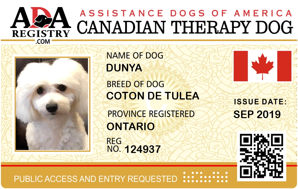 Therapy Dog Registration for Dunya