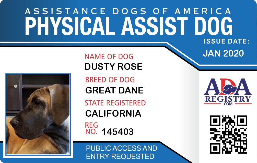 Physical Assistance Dog Registration for Dusty Rose