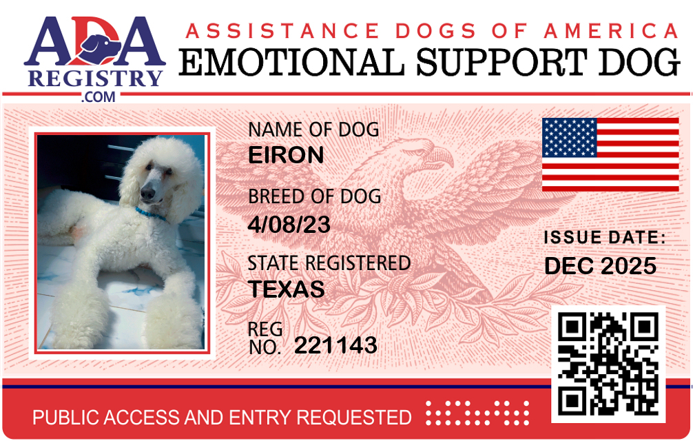 Emotional Support Dog Registration for Eiron