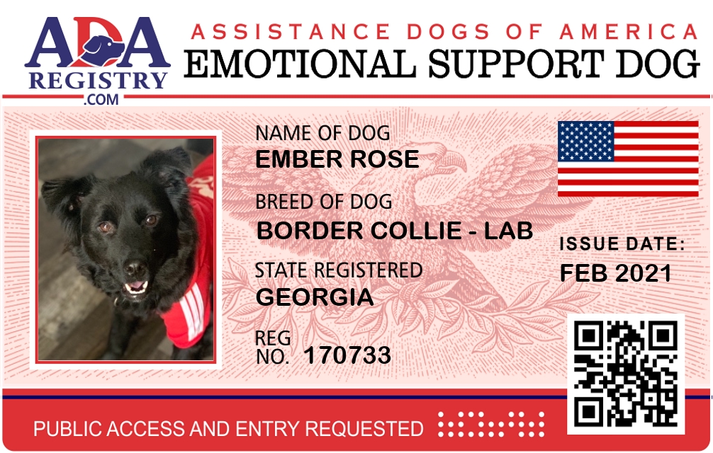 Emotional Support Dog Registration for Ember Rose