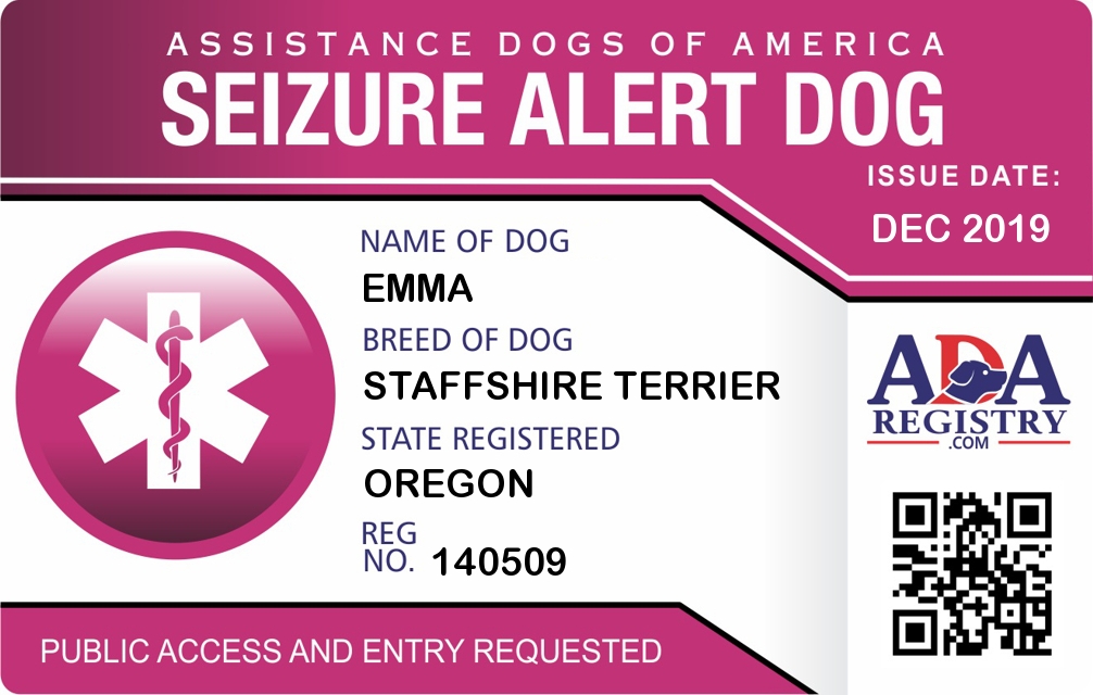 Seizure Assistance Dog Registration for Emma
