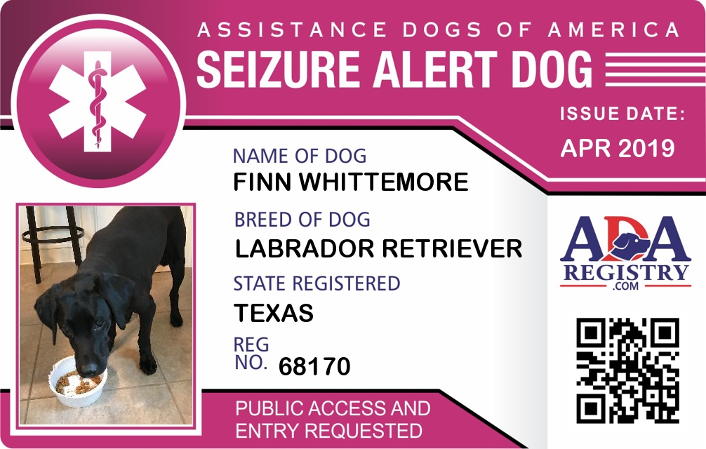 Seizure Assistance Dog Registration for FINN WHITTEMORE