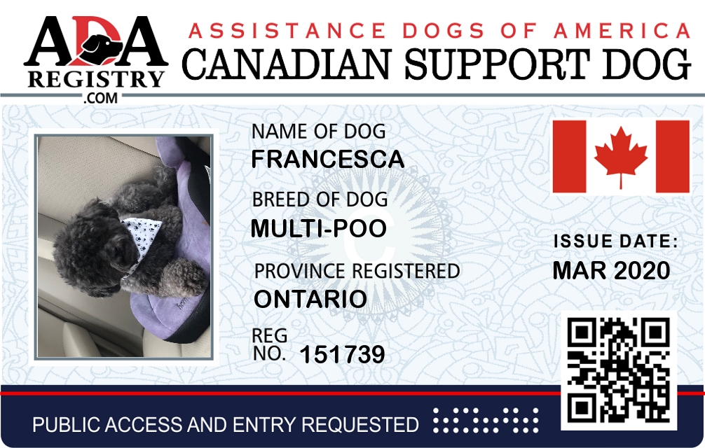 Emotional Support Dog Registration for Francesca
