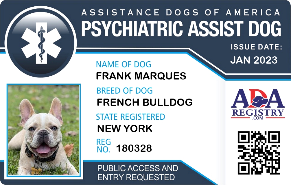 Service Dog Registration for Frank Marques