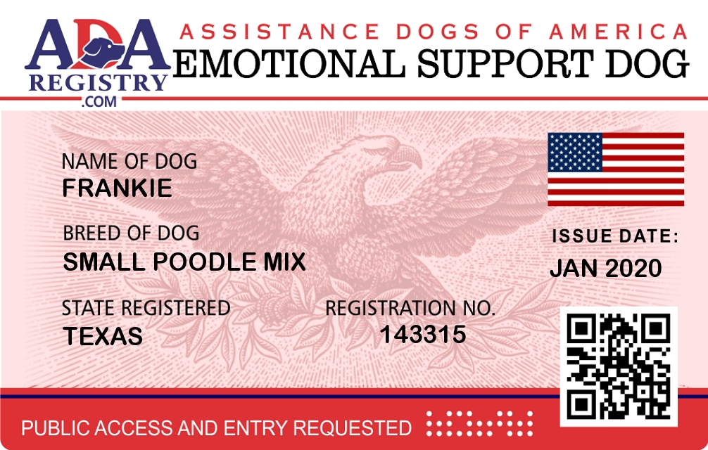 Emotional Support Dog Registration for Frankie