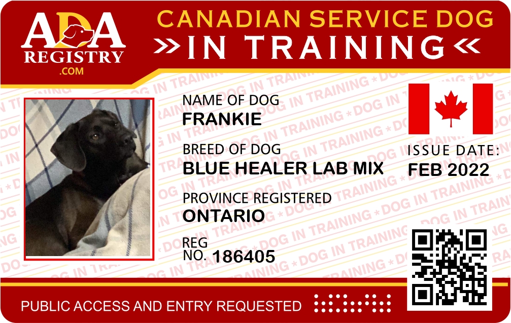 Service Dog In Training Registration for Frankie