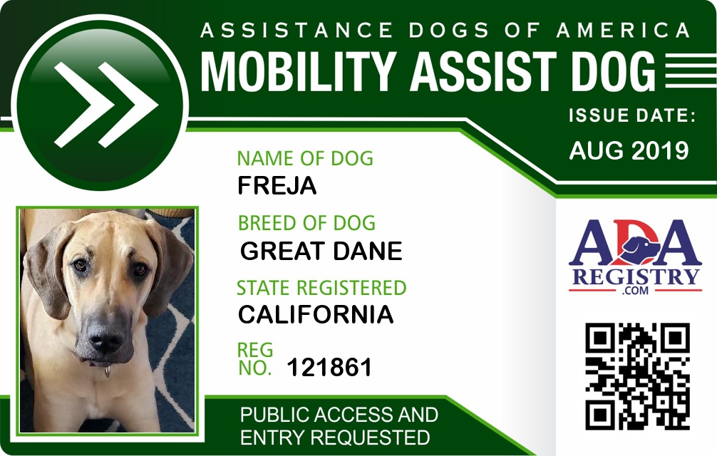 Registration Type: Brace / Mobility Assistance Dog Registration
