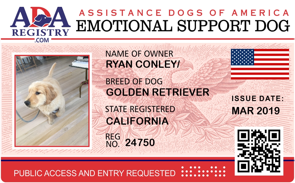 Emotional Support Dog Registration for George Conley