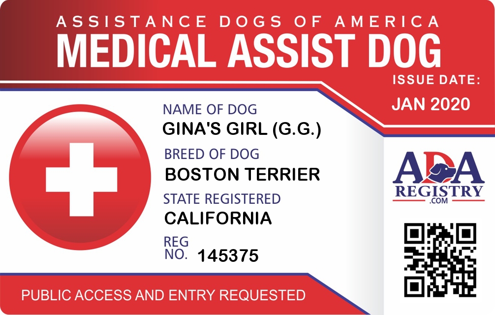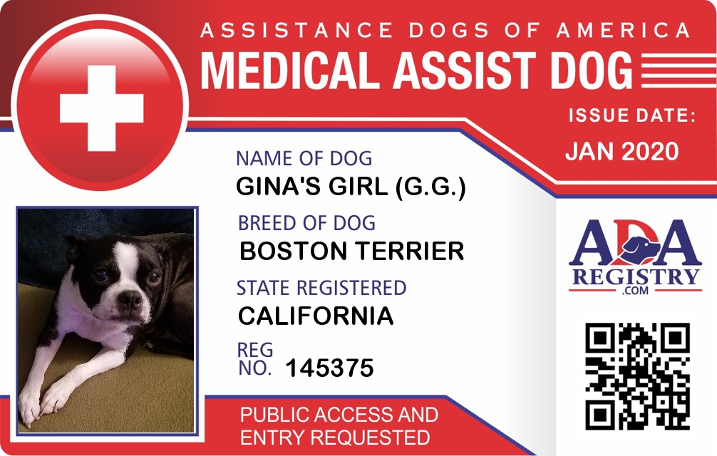 Medical Assistance Dog Registration for Gina’s Girl (G.G.)