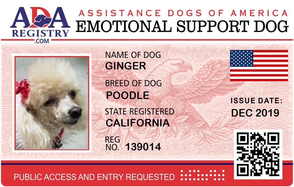 Emotional Support Dog Registration for Ginger