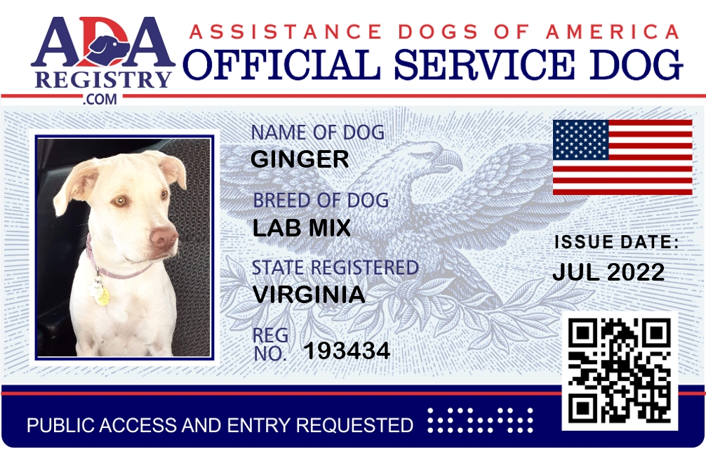 Service Dog Registration for Ginger