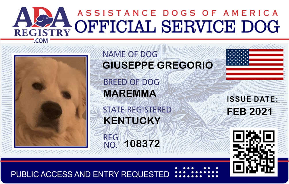 Service Dog Registration for Giuseppe Gregorio