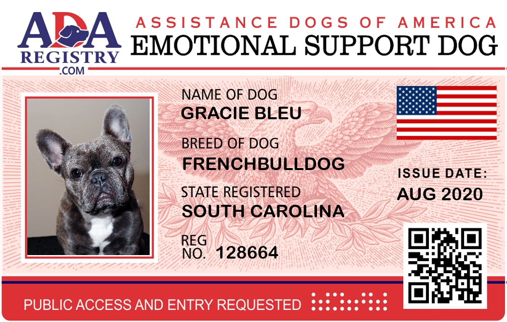 Emotional Support Dog Registration for Gracie Bleu