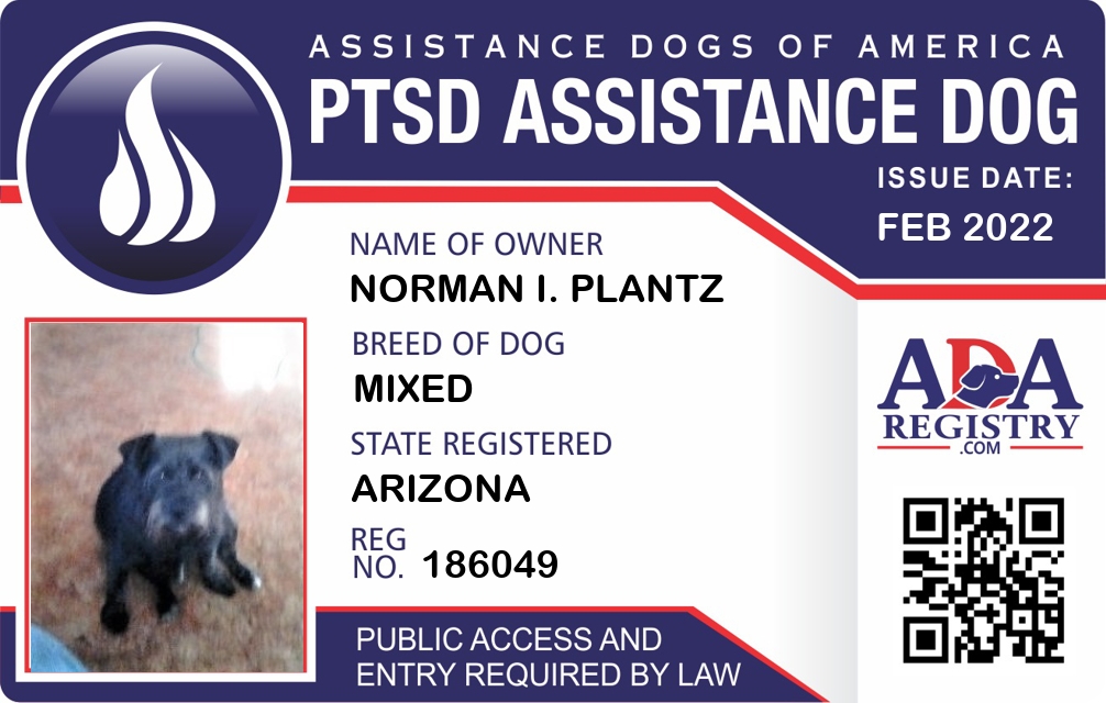 PTSD Assistance Dog Registration for Gracie Nicale Plantz
