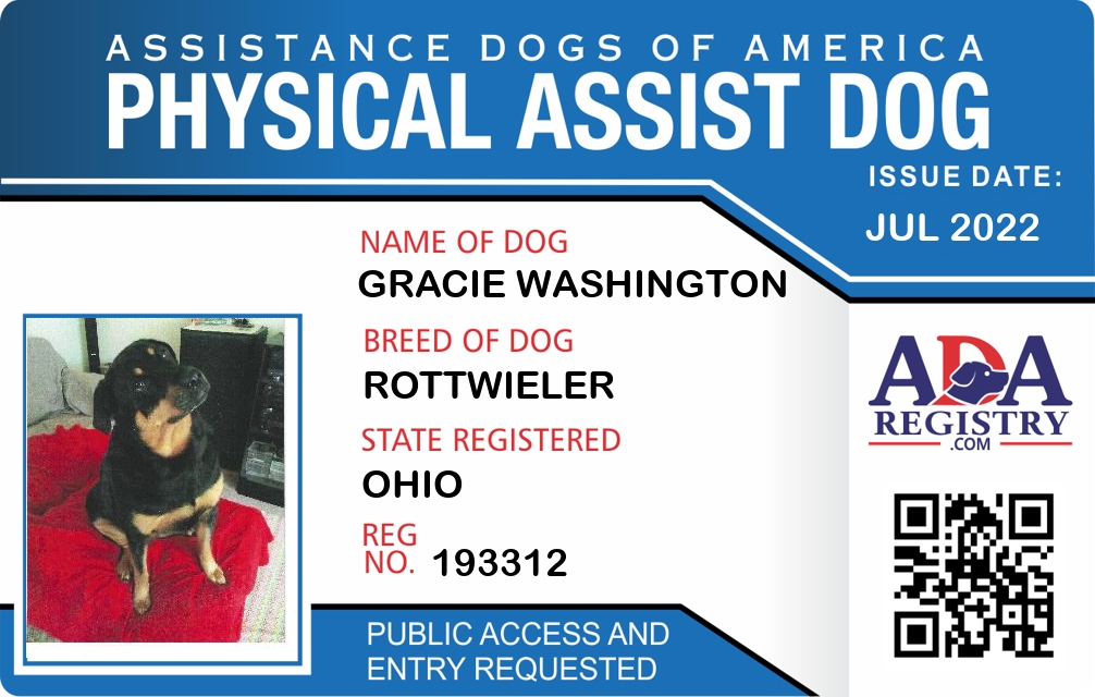 Physical Assistance Dog Registration for GRACIE WASHINGTON