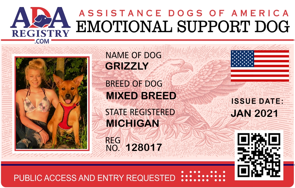 Emotional Support Dog Registration for Grizzly