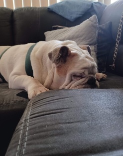 10 year old English bulldog. Still in great health. Fun, loves balls, and car rides. Also loves kayaking