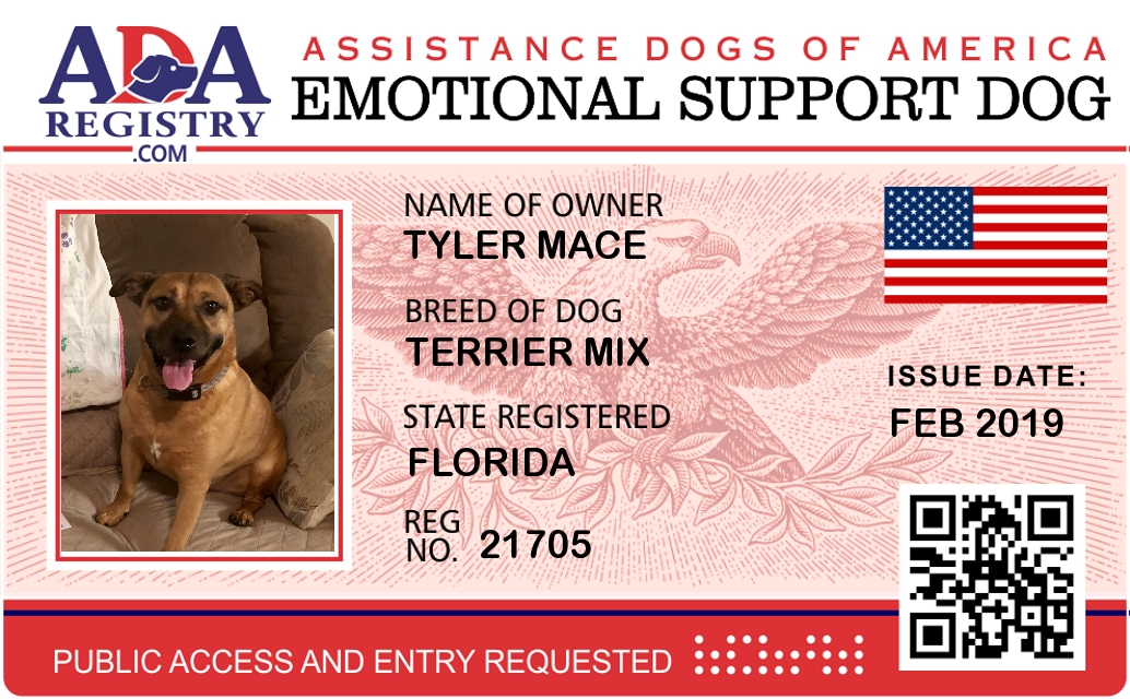 Emotional Support Dog Registration for Gunner