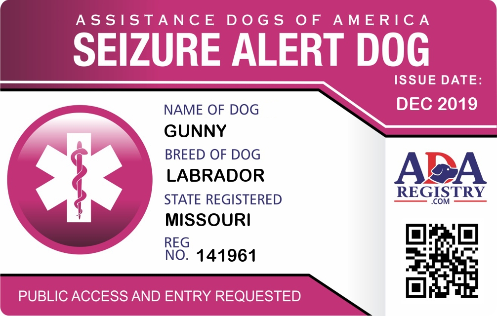 Seizure Assistance Dog Registration for Gunny