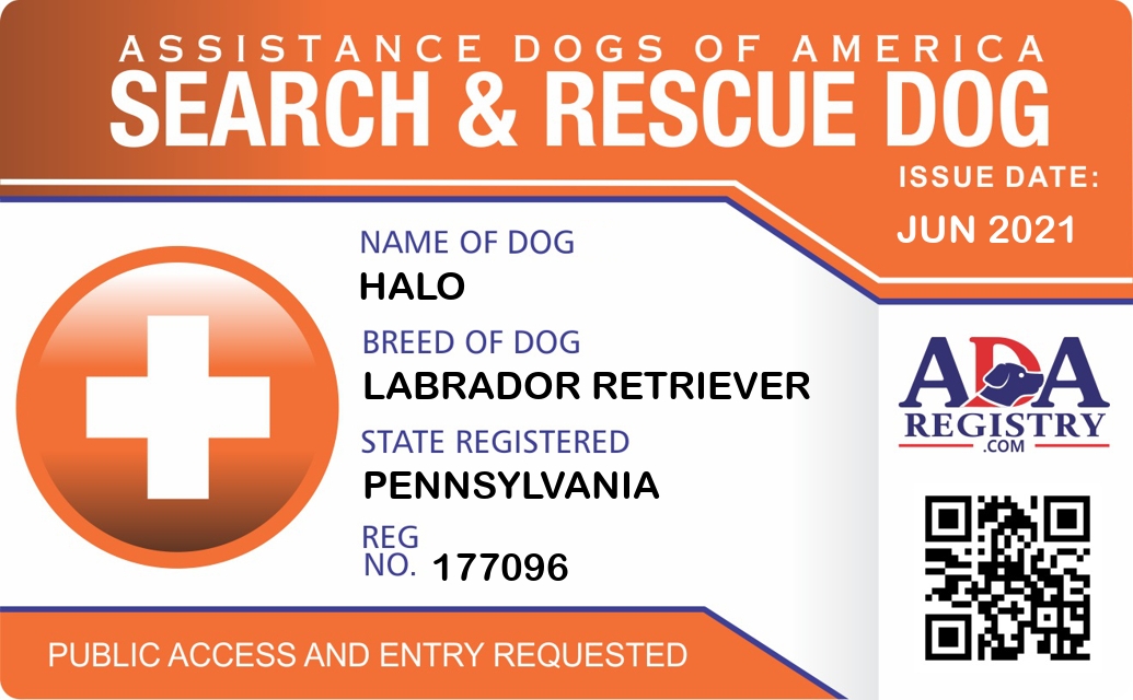 Search And Rescue Dog Registration for Halo