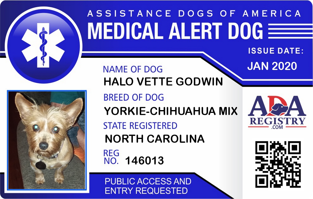 Medical Alert Dog Registration for Halo Vette Godwin