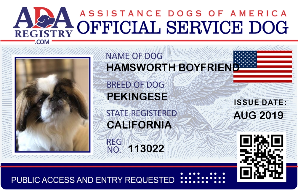 Service Dog Registration for Hamsworth Boyfriend