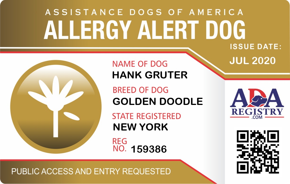 Allergy Alert Dog Registration for Hank Gruter