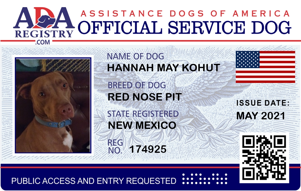 Service Dog Registration for Hannah May Kohut