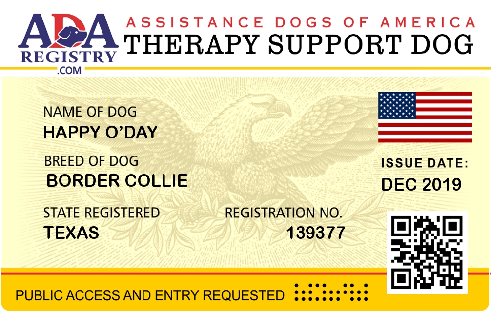 Therapy Dog Registration for Happy O’Day
