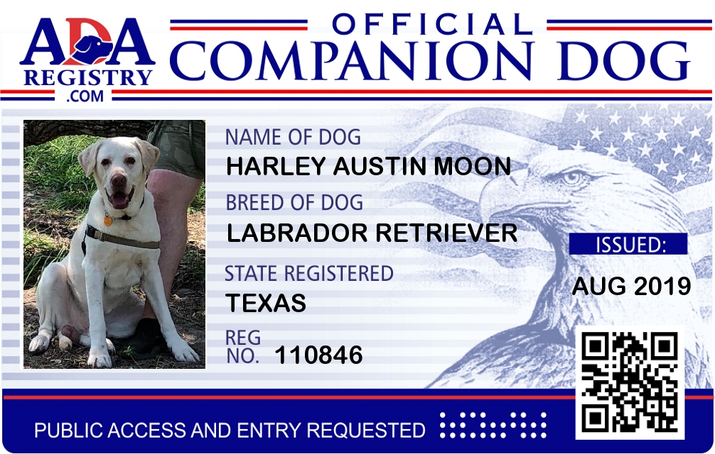 Companion Dog Registration for Harley Austin Moon