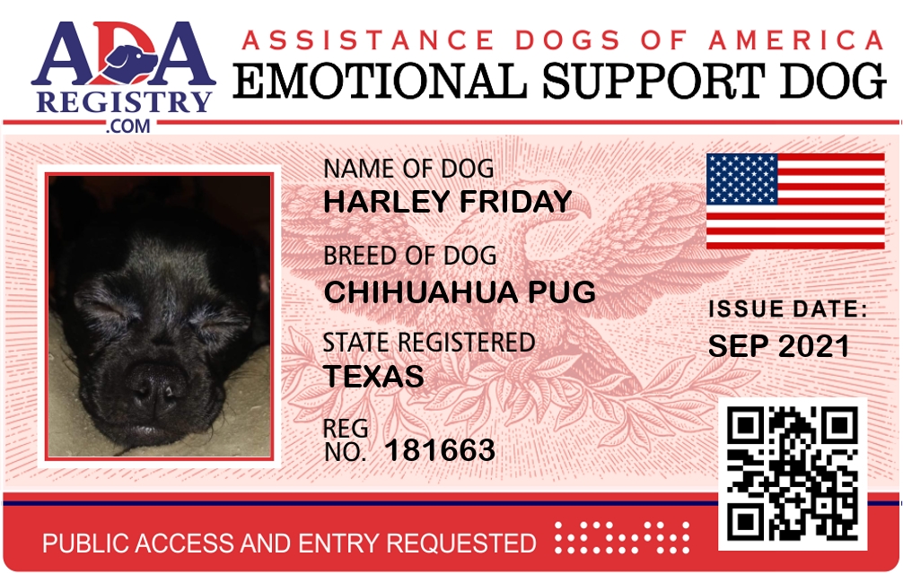 Emotional Support Dog Registration for Harley Friday