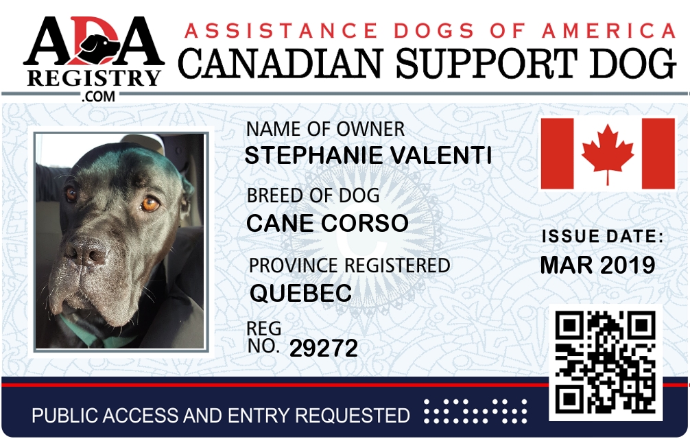 Emotional Support Dog Registration for Harley Zenga