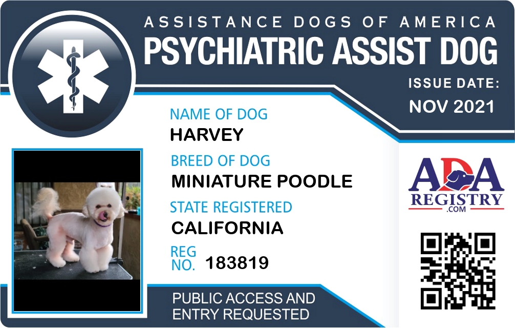 Psychiatric Service Dog Registration for Harvey