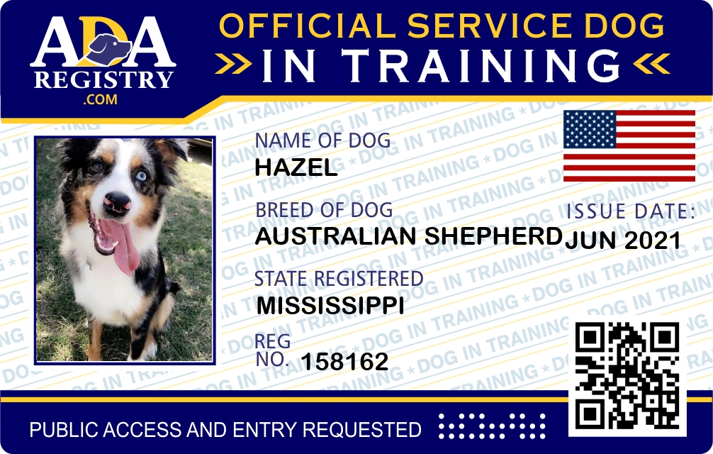 Service Dog In Training Registration for Hazel