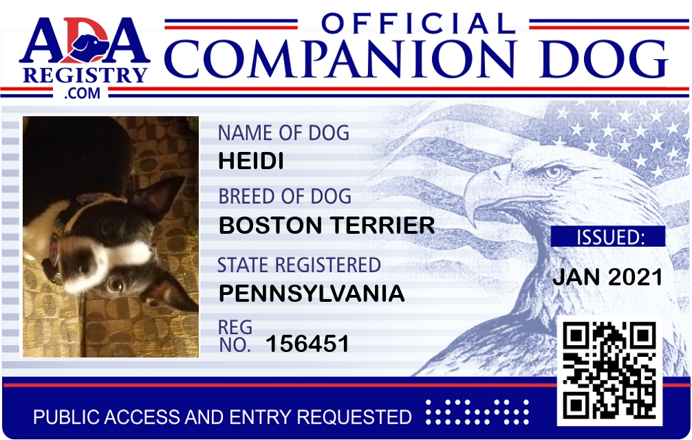 Service Dog Registration for Heidi