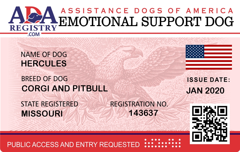 Emotional Support Dog Registration for Hercules