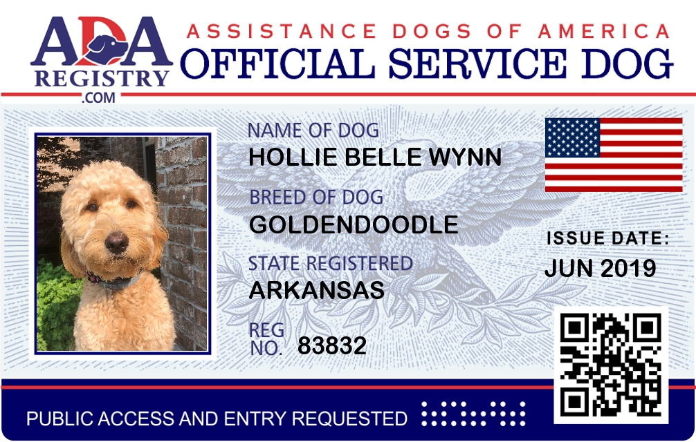 Psychiatric Service Dog Registration for Hollie Belle Wynn