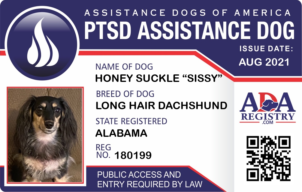 PTSD Assistance Dog Registration for Honey Suckle “Sissy”