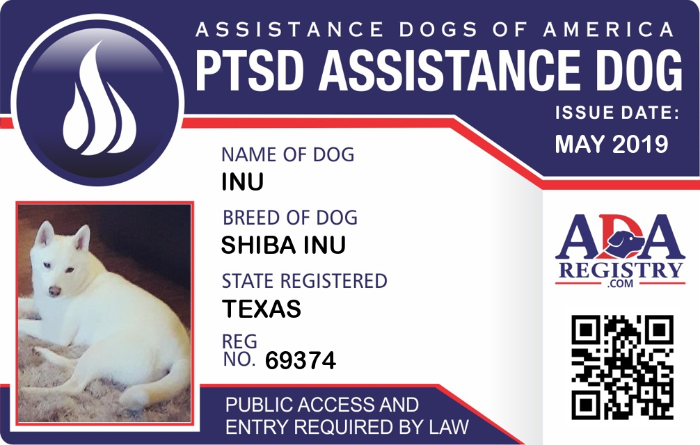 PTSD Assistance Dog Registration for Inu