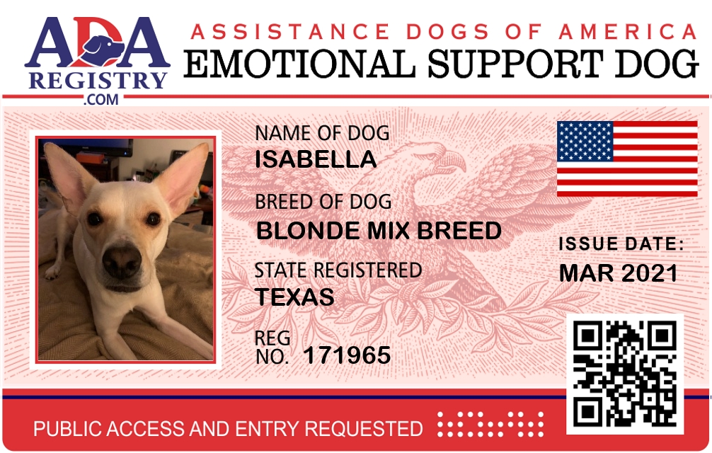 Emotional Support Dog Registration for Isabella