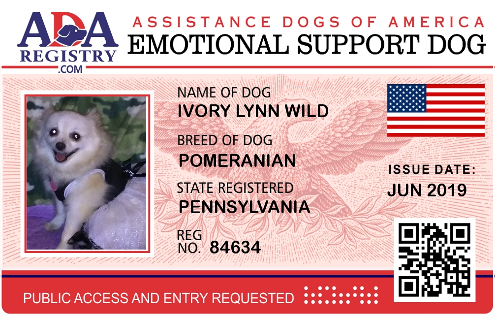 Emotional Support Dog Registration for IVORY LYNN WILD
