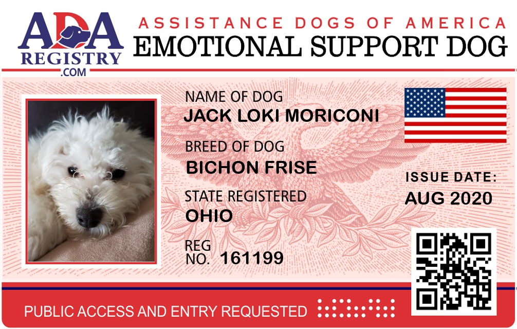 Emotional Support Dog Registration for Jack Loki Moriconi
