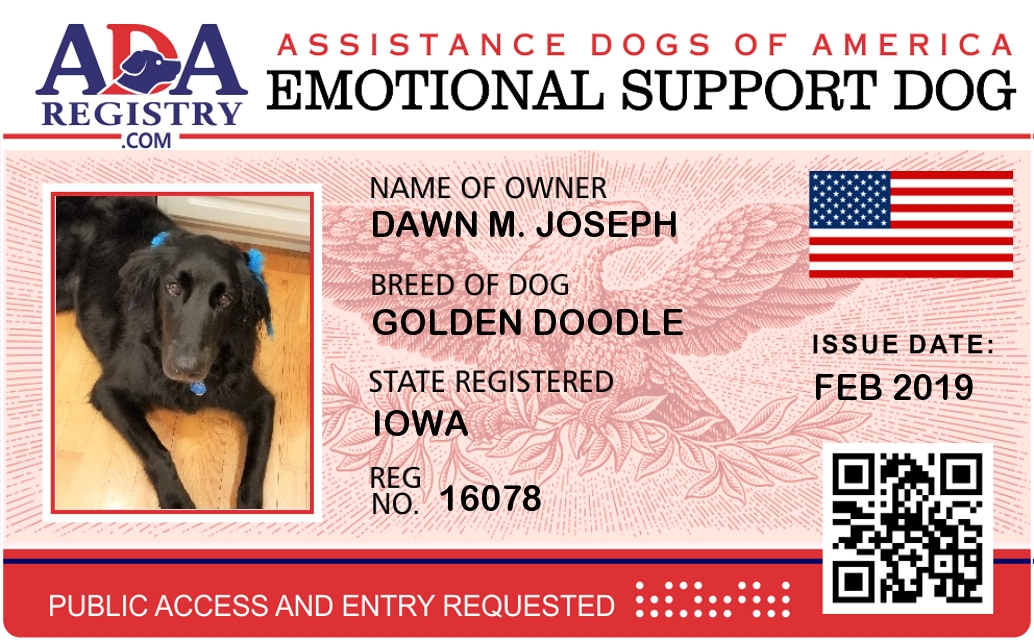 Emotional Support Dog Registration for Jada Joseph