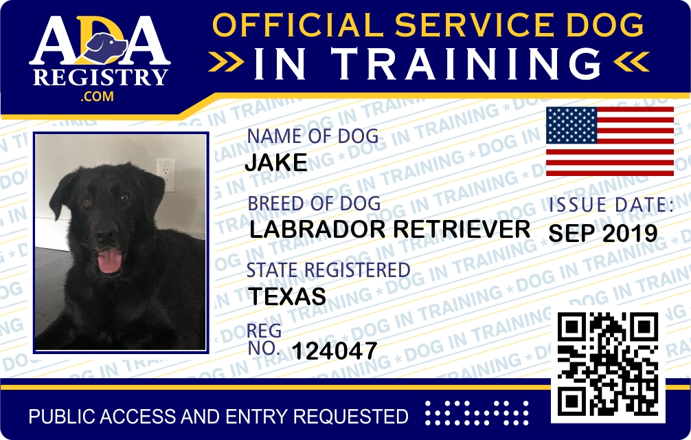 Service Dog In Training Registration for Jake