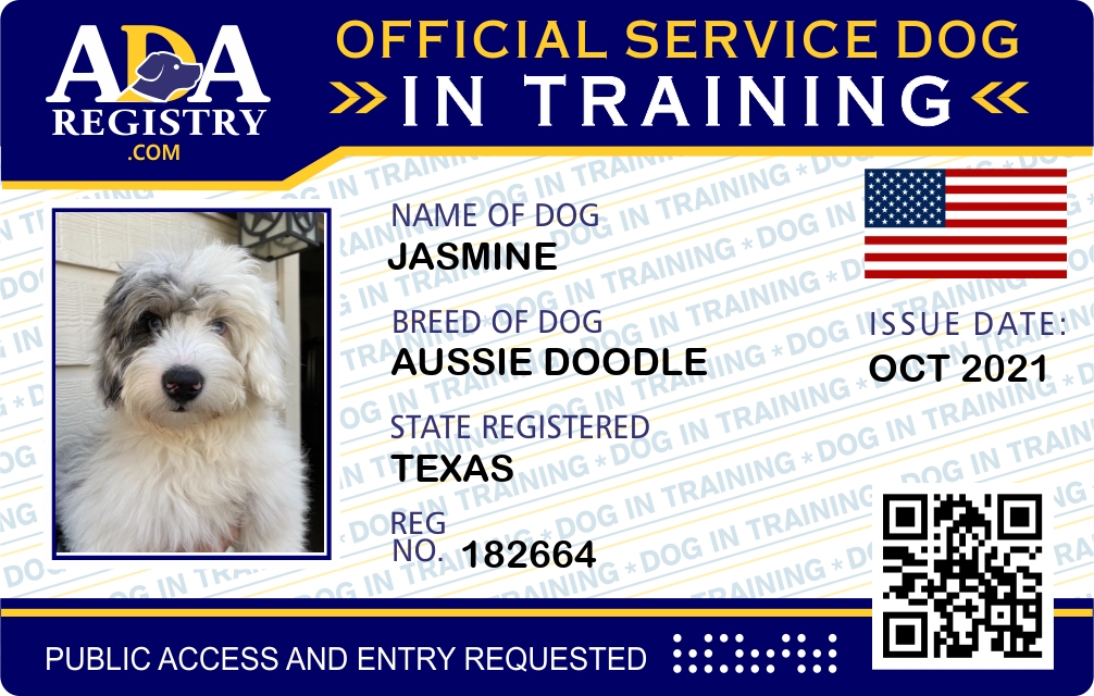 Service Dog In Training Registration for Jasmine