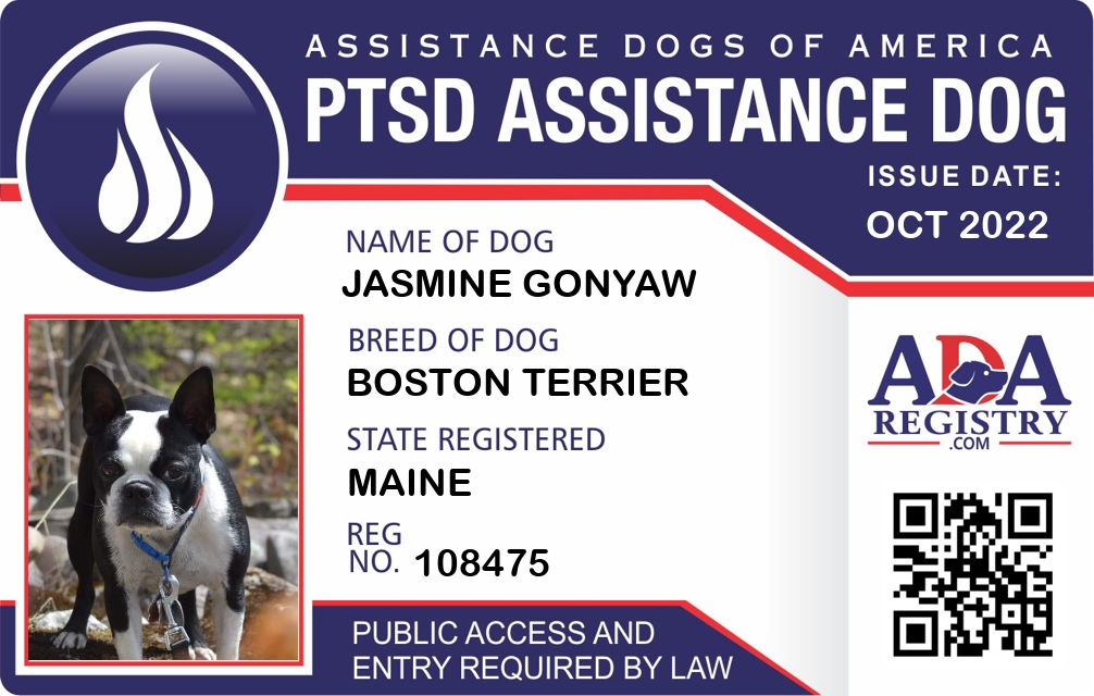 PTSD Assistance Dog Registration for Jasmine Gonyaw
